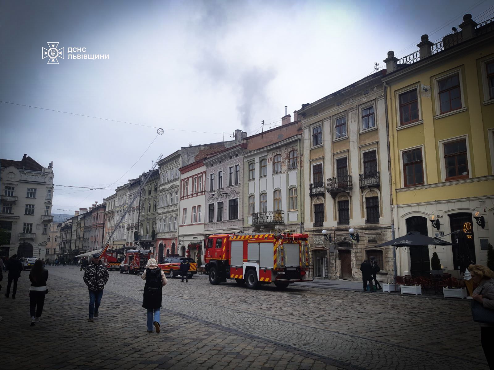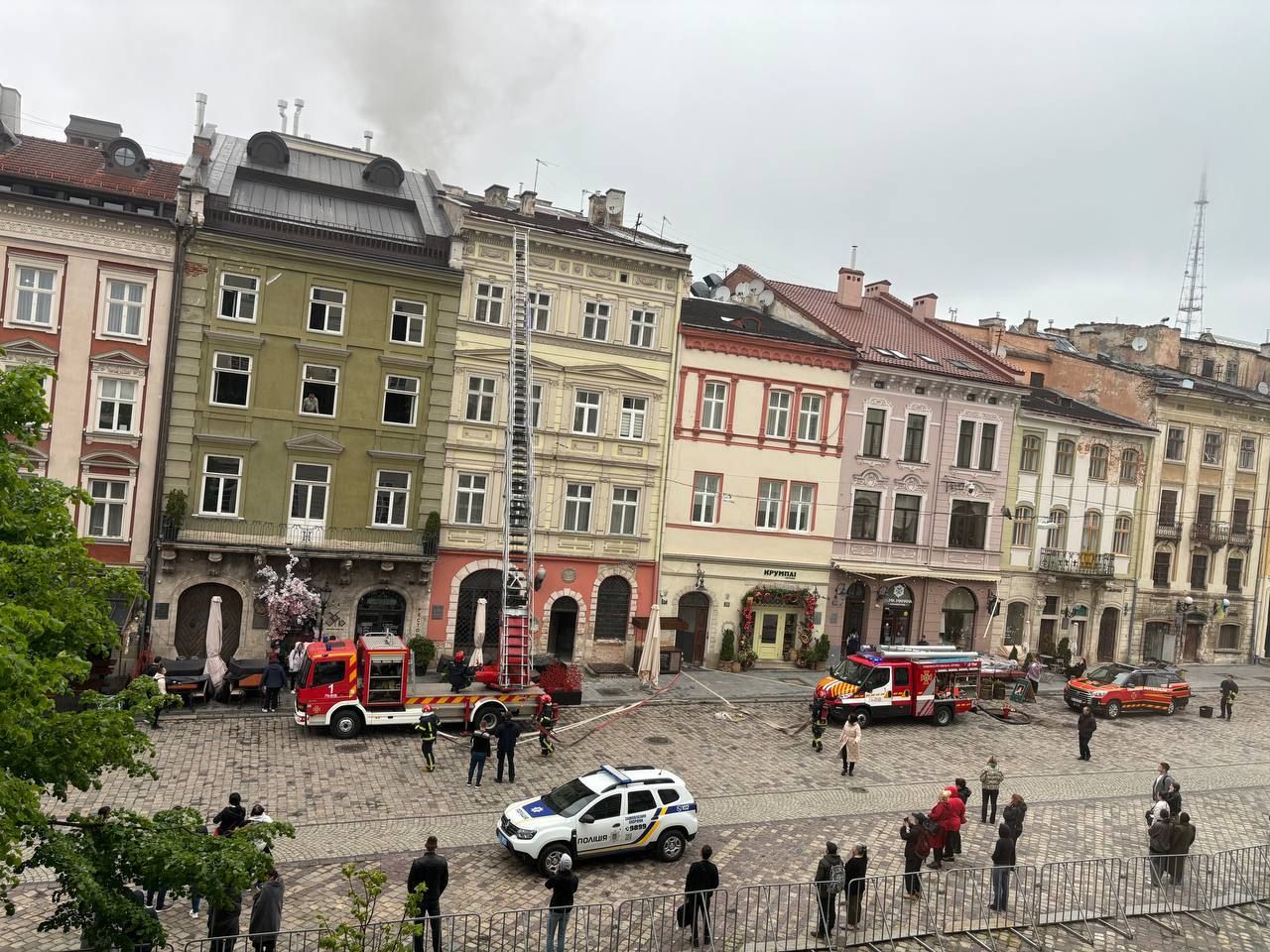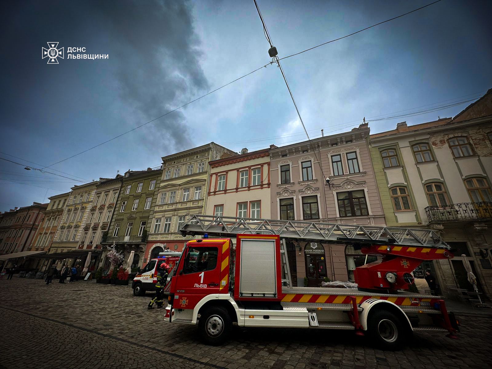 Пожежа на площі Ринок: фото ДСНС, "Перша приватна мемарня", "Львівич"