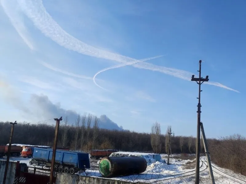 Російські телеграм-канали поширили кадри з місця подій. Очевидці встигли зафіксувати й момент вибуху, й процес горіння, й стовп диму з різних куточків області.