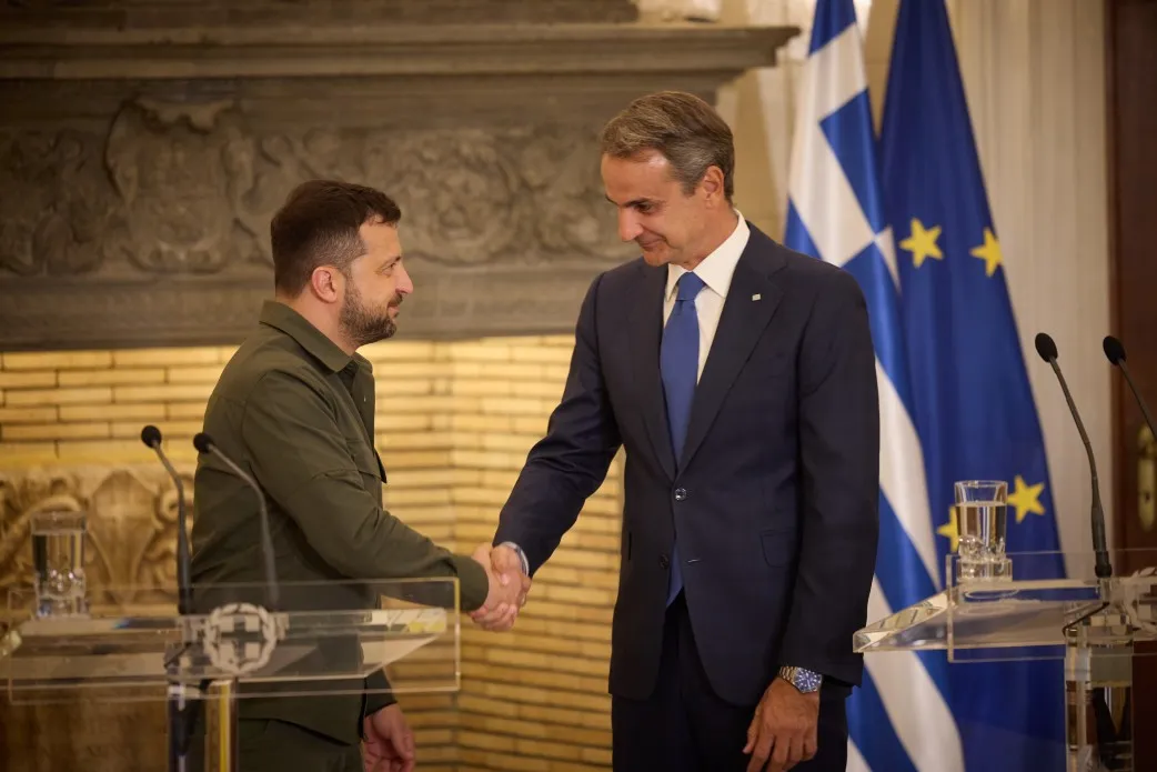 Зеленський після спільного брифінгу з грецьким прем'єр-міністром Кіріакосом Міцотакісом / фото ОП
