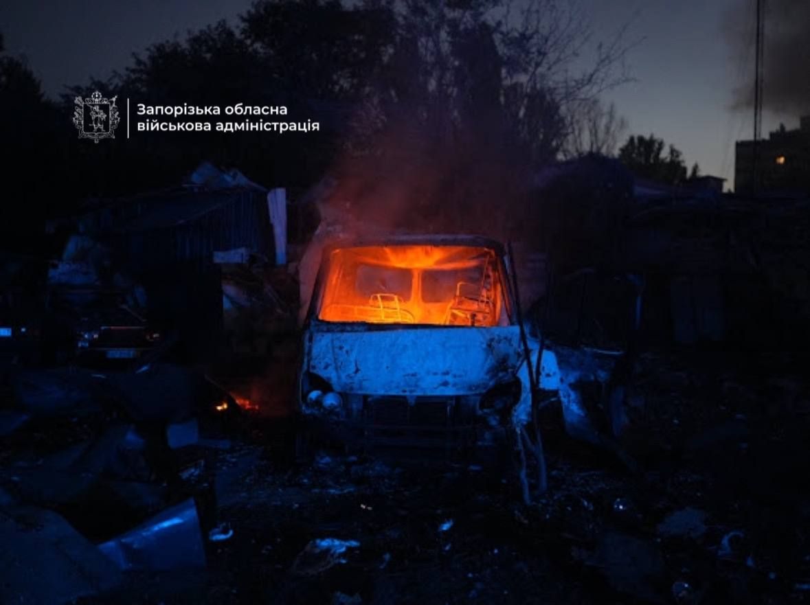 А ближче до 5 ранку у Запоріжжі знову почали лунати вибухи. У місті виникла пожежа. Ворог влучив в об'єкт цивільної інфраструктури. Знищено та пошкоджено автівки.