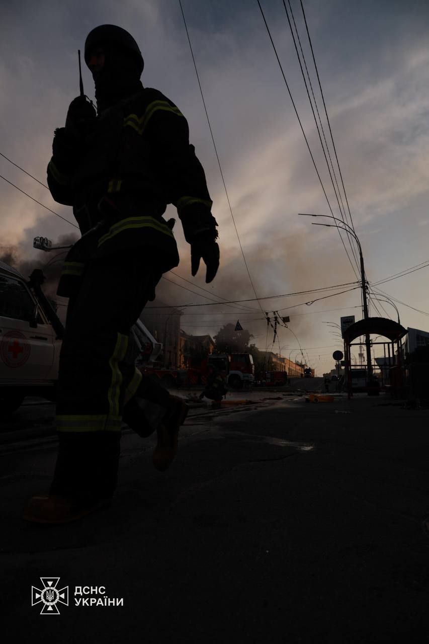 Зауважимо, що загалом до ліквідації наслідків атаки у столиці залучалися 254 рятувальники, психологи, 53 одиниці техніки ДСНС та волонтери Українського Червоного Хреста. Роботи тривають.