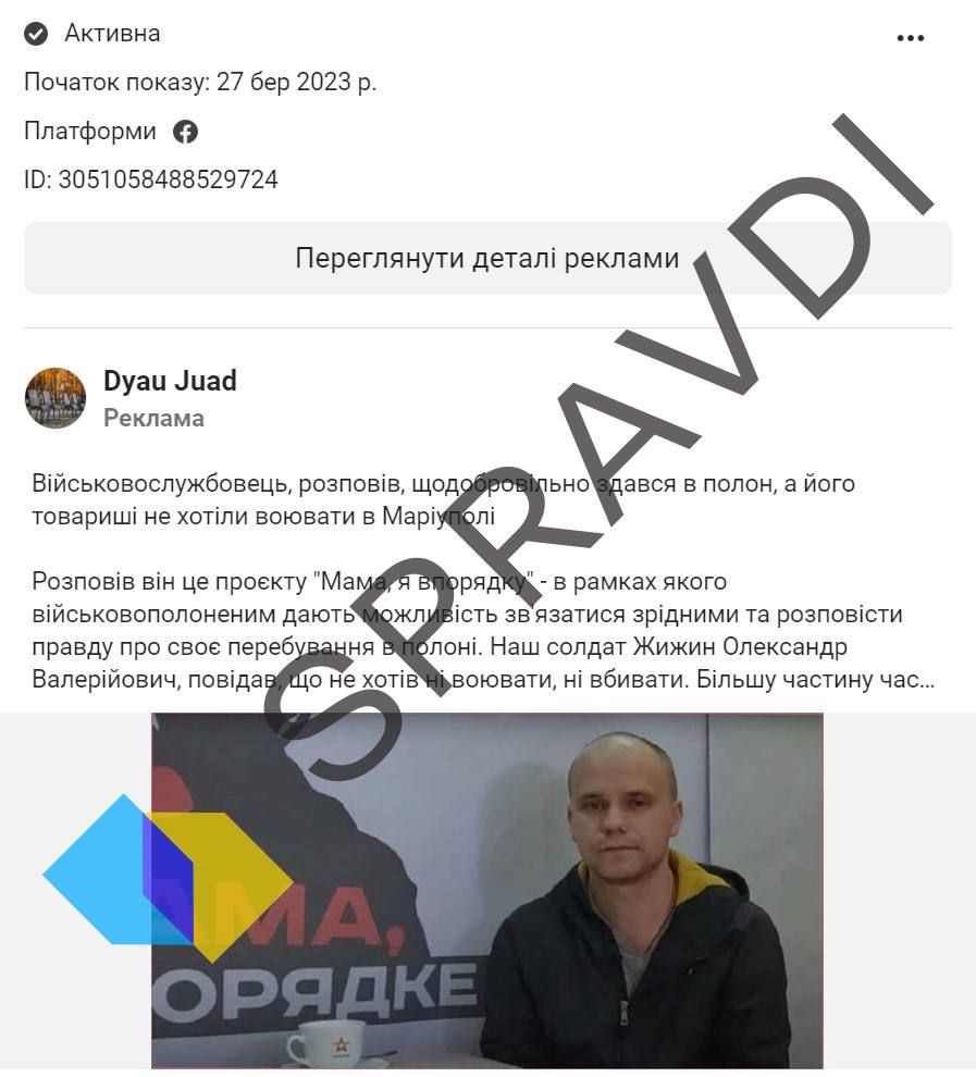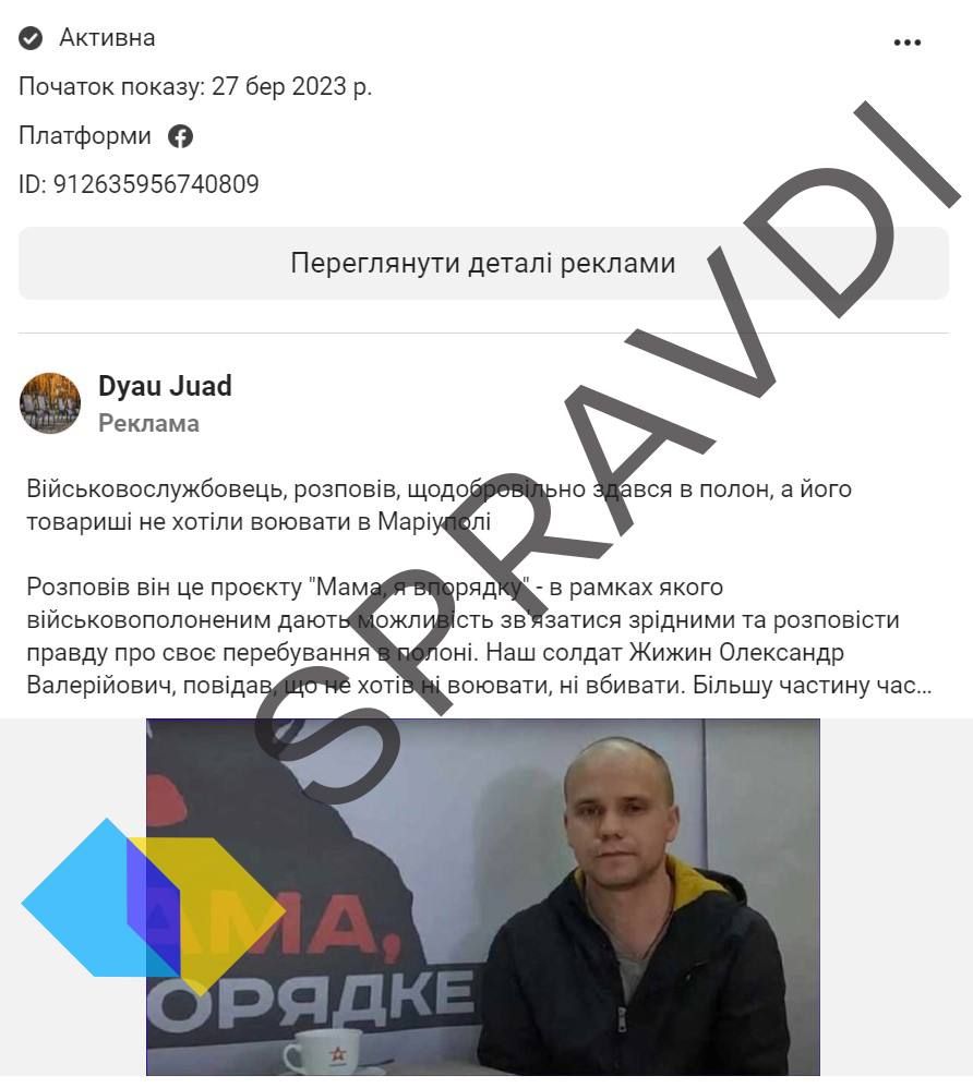 У вівторок, 28 березня, Центр стратегічних комунікацій повідомив, що зафіксував у фейсбуку нову інформаційно-психологічну операцію Росії. Власне, пропагандисти поширюють з анонімних акаунтів повідомлення про українця, який начебто "добровільно здався у російський полон, бо не хотів воювати".