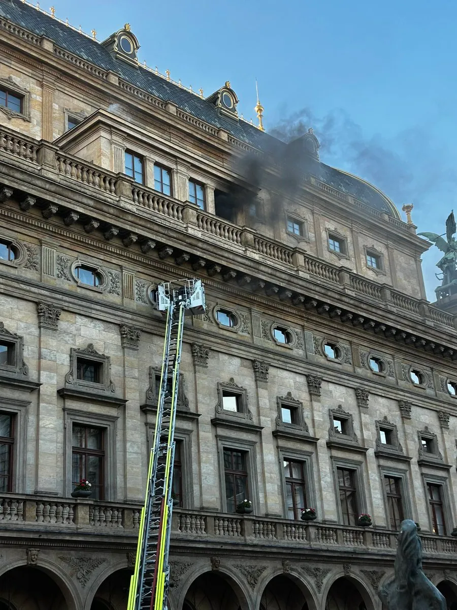 Ми співпрацюємо з пожежною службою, наразі Народна вулиця перекрита в одному напрямку від Влтави до Спаленої навколо Національного театру,