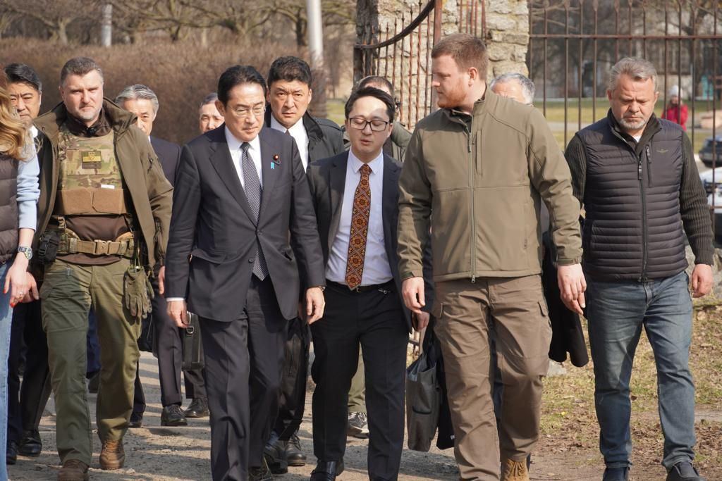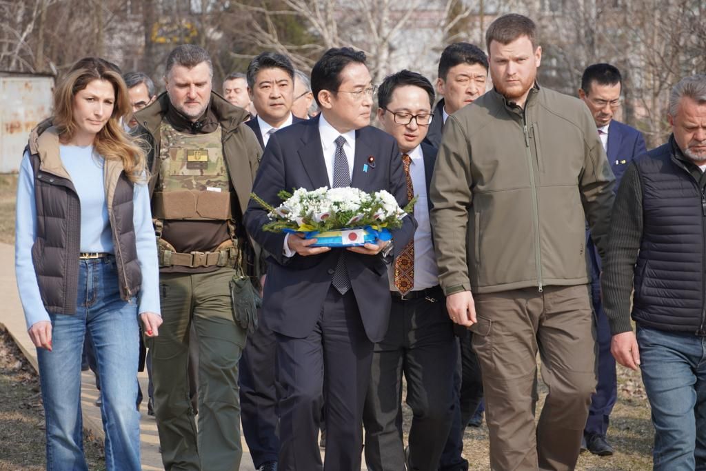 Кішіда разом з українською делегацією покладанням квітів, вшанували пам'ять українців, які загинули від рук окупантів у Бучі.