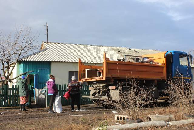 Представники гуманітарної місії допомогли місцевим мешканцям переїхати у більш безпечні населені пункти. Люди забирали із собою речі, які вціліли після обстрілів та худобу.