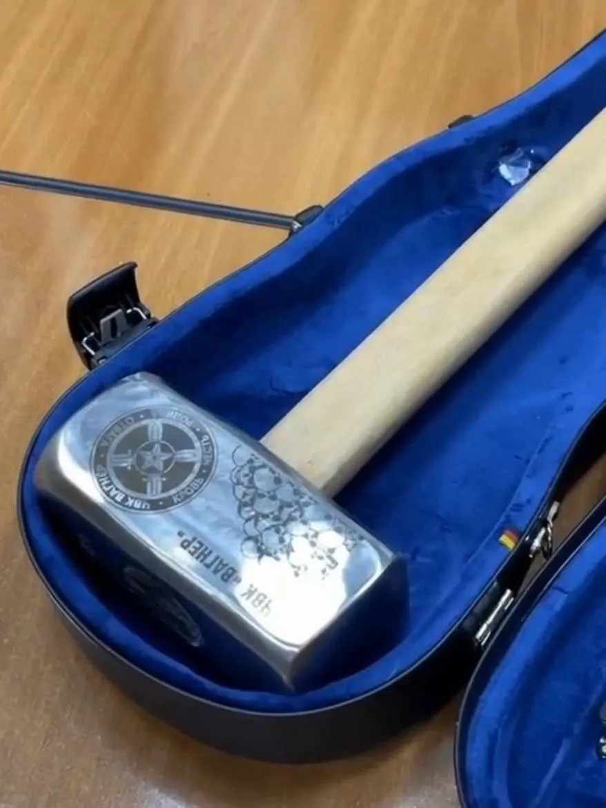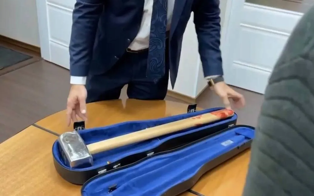 Засновник вагнерівців показав закривавлену кувалду у футлярі від скрипки. Він також назвав її "інформаційним кейсом" для нібито розпуску Європарламенту.