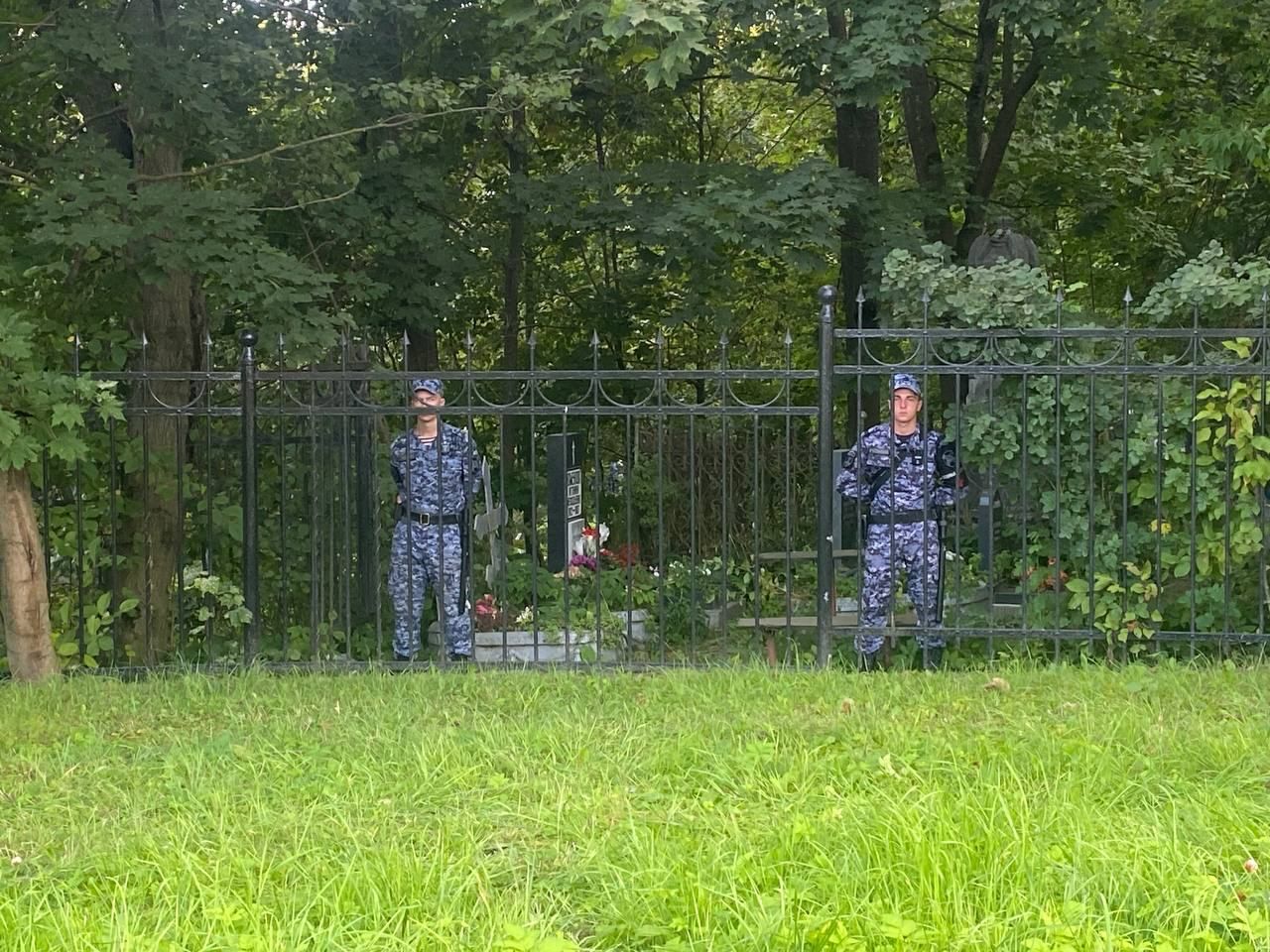 За інформацією російських журналістів, відвідувачів не пускають на кладовище. Один із силовиків в оточенні сказав, що пройти на цвинтар можна буде лише вранці.