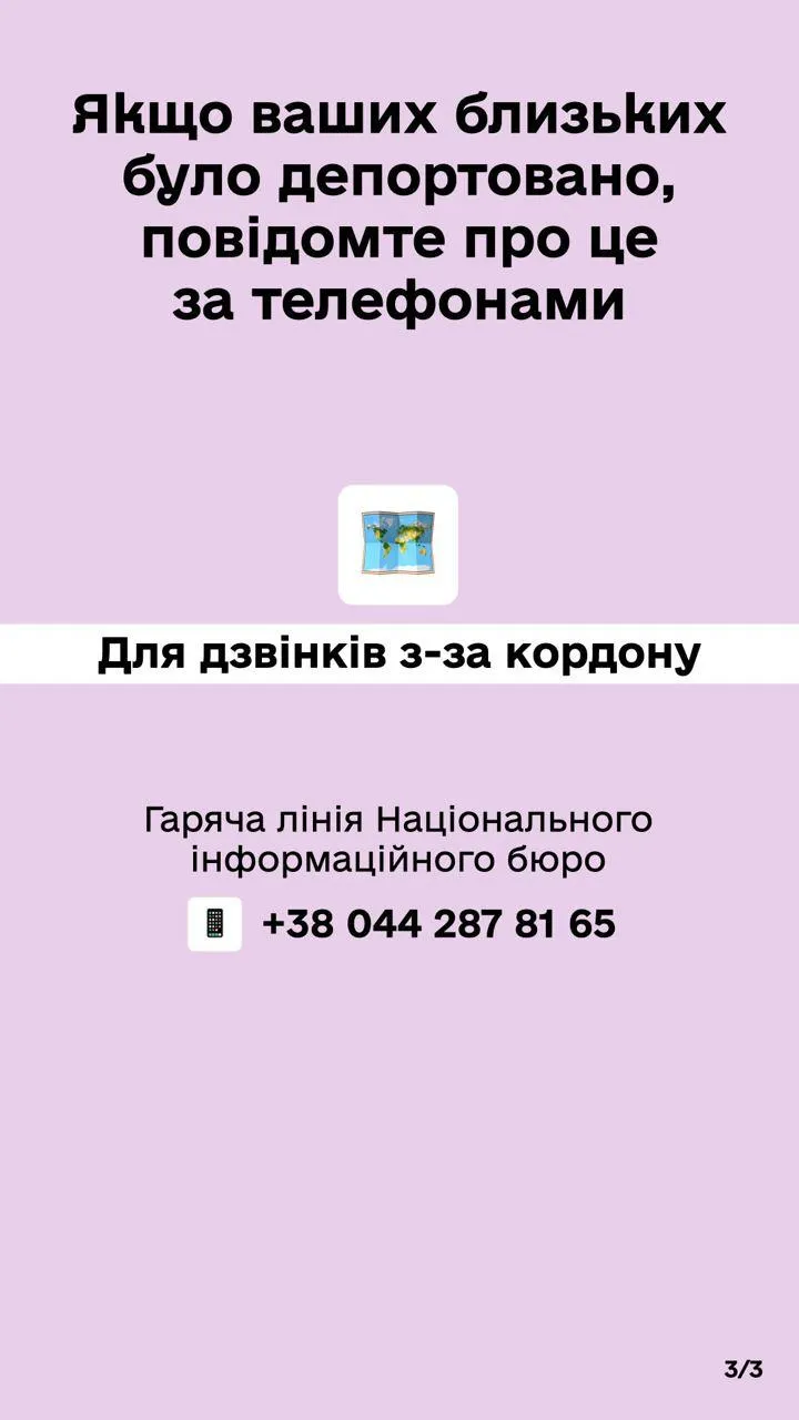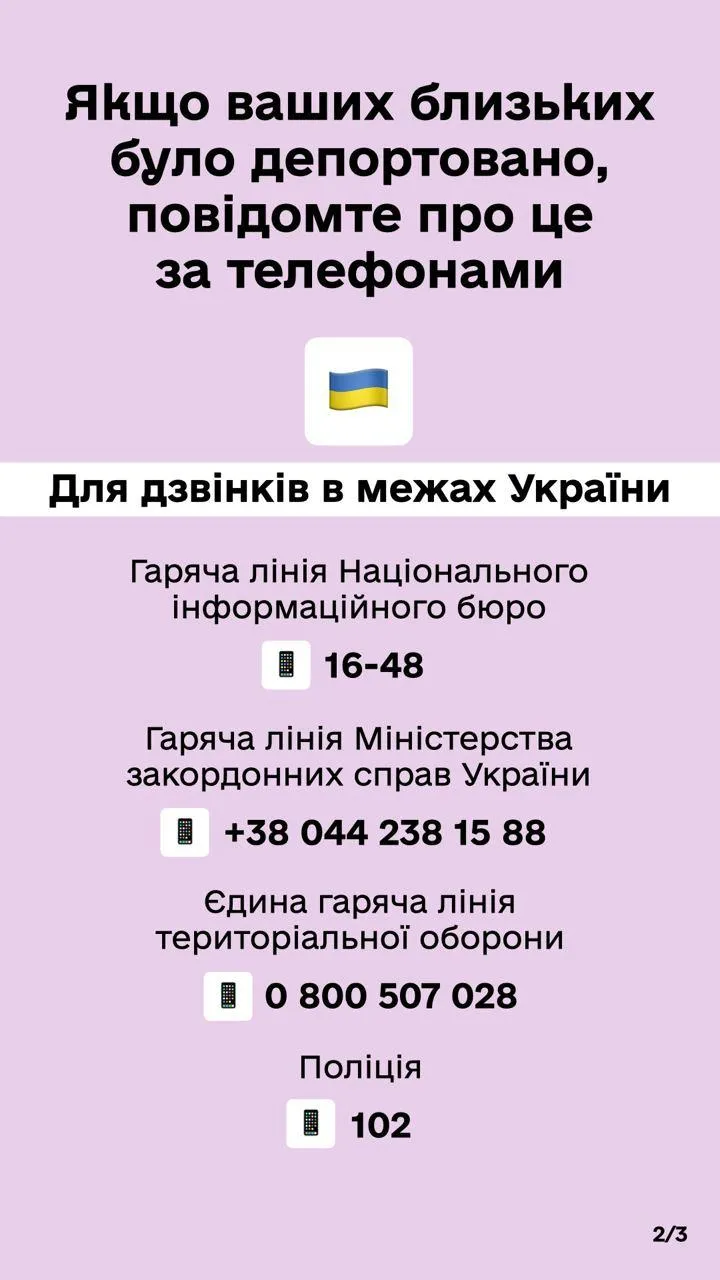 Якщо ваших близьких було депортовано, повідомте про це за телефонами