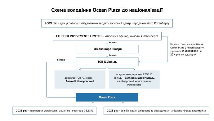 - Володіла торговельним центром Ocean Plaza в Києві компанія, яка належить російському олігарху Аркадію Ротенбергу.