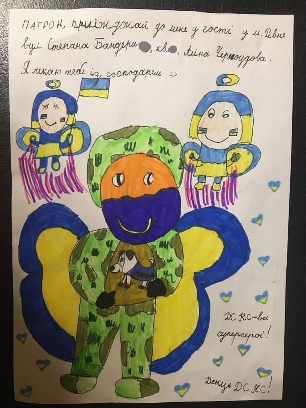 "Патрон, приїжджай до мене в гості, я чекаю тебе із господарем!", – можна було побачити під малюнком талановитої дівчинки.