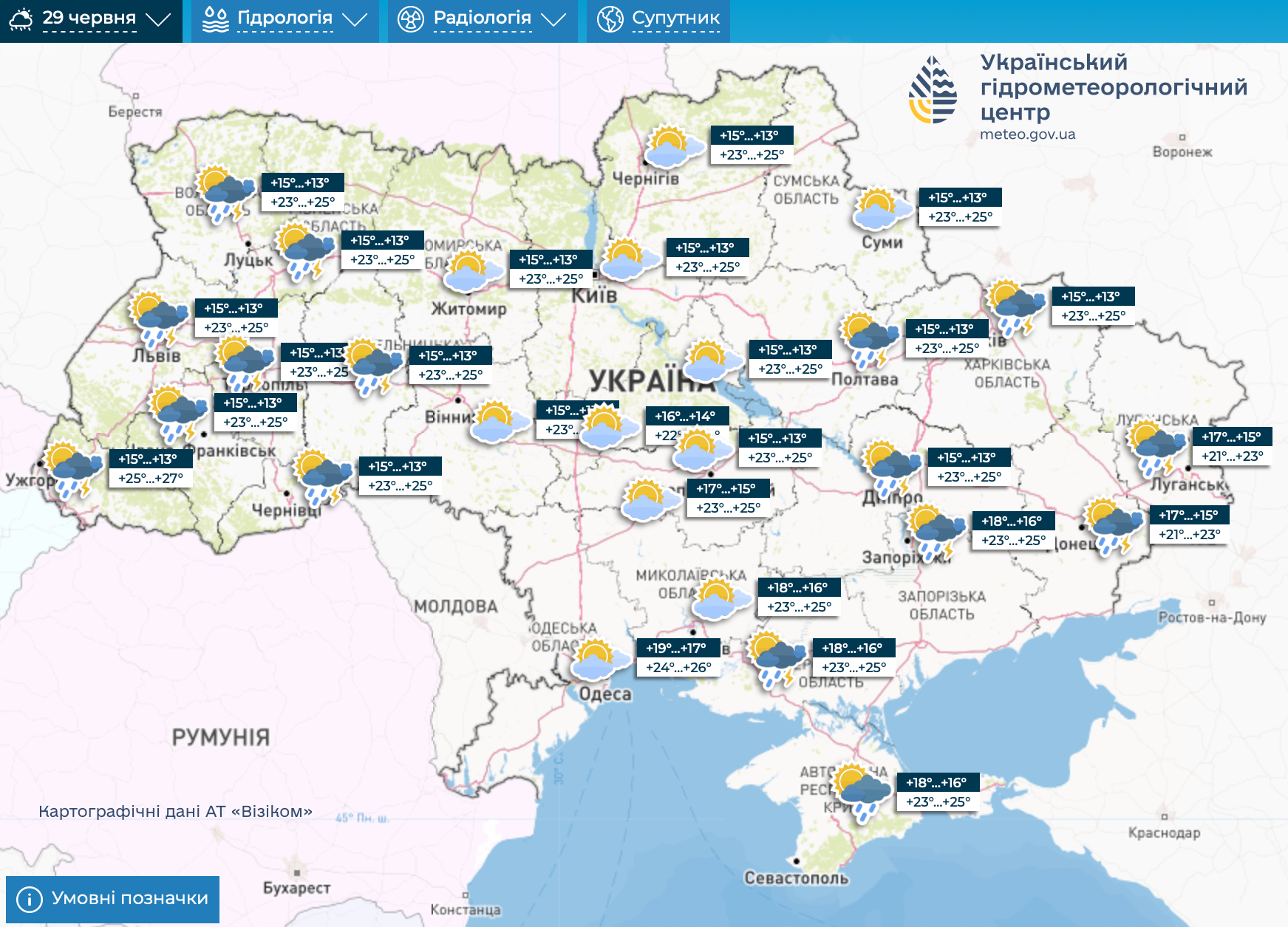 Прогноз на 26 – 30 червня / Скриншоти з Укргідрометцентру