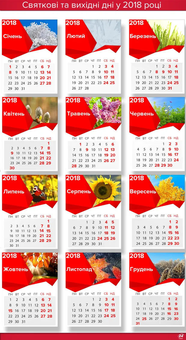 Читайте також: Вихідні дні-2018: календар свят в Україні