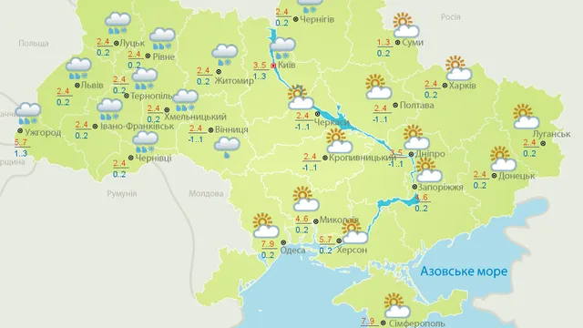 Прогноз погоди на вівторок, 2 січня, у містах України: