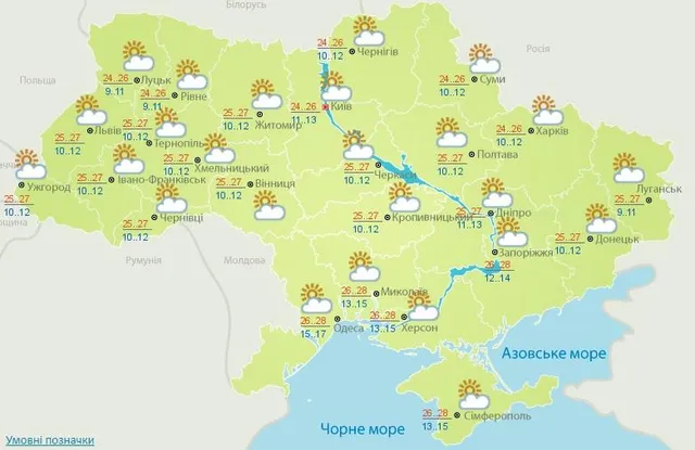 Прогноз погоди на п’ятницю, 25 серпня, у містах України: