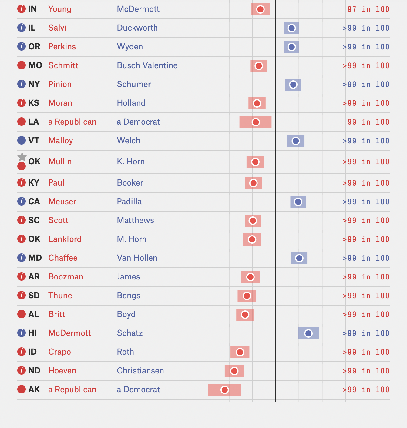 Яка ситуація в Сенаті / інфографіка проєкту ABC FiveThirtyEight