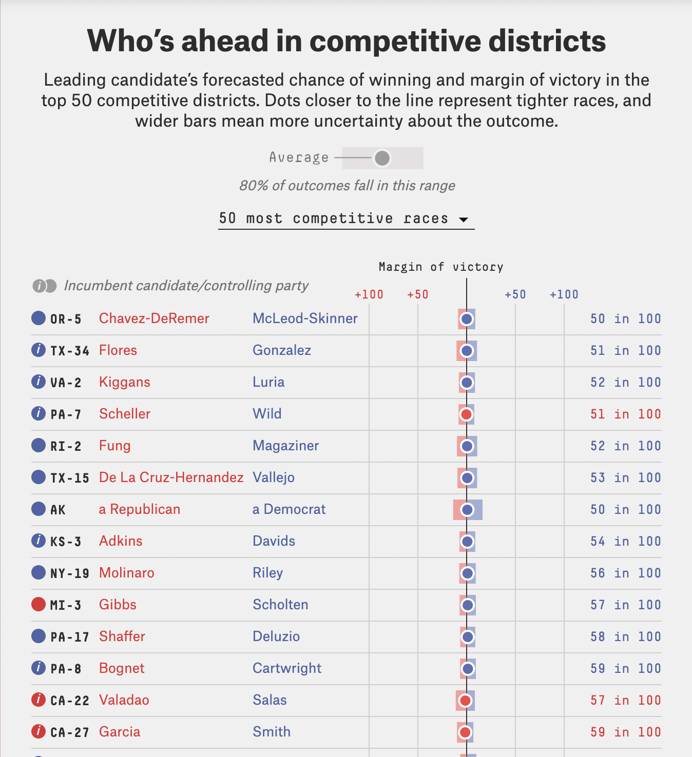 Якою є ситуація в Палаті представників станом на 25 жовтня / інфографіка проєкту ABC FiveThirtyEight