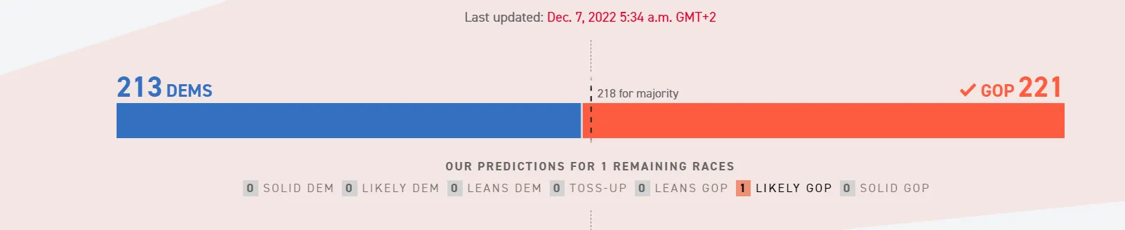 Республіканці здобули більшість у Палаті представників Конгресу, відновивши контроль над палатою вперше з 2018 року.