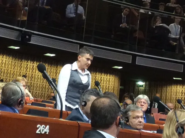 Надія Савченко 20 червня прибула для участі в робочому засіданні групи Європейської народної партії в рамках пленарного засідання ПАРЄ. Члени Парламентської асамблеї Ради Європи зустріли її гучними оплесками.