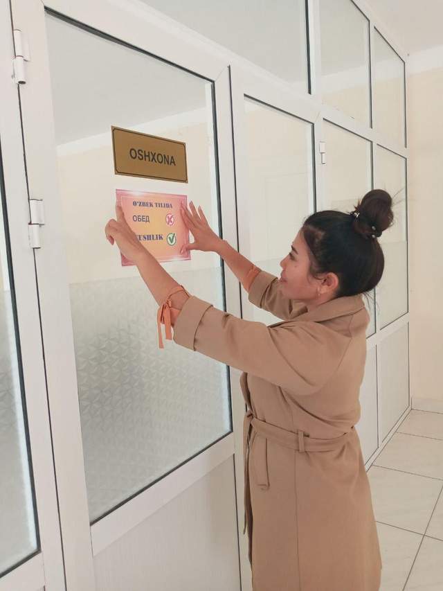 На табличках переважно публікують 2 слова узбецькою та російською мовами. Біля узбецького слова ставлять галочку, біля російського – хрестик.