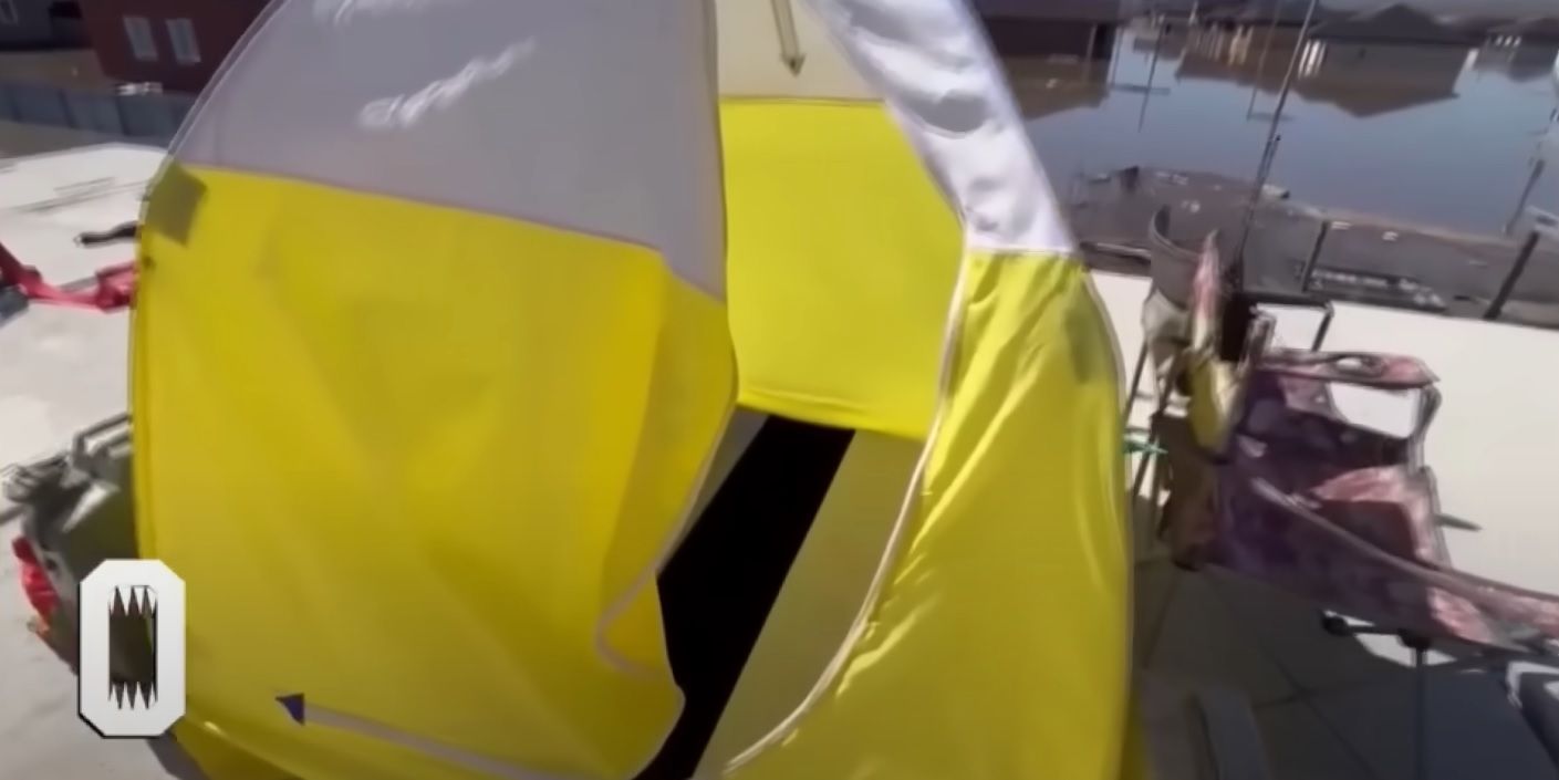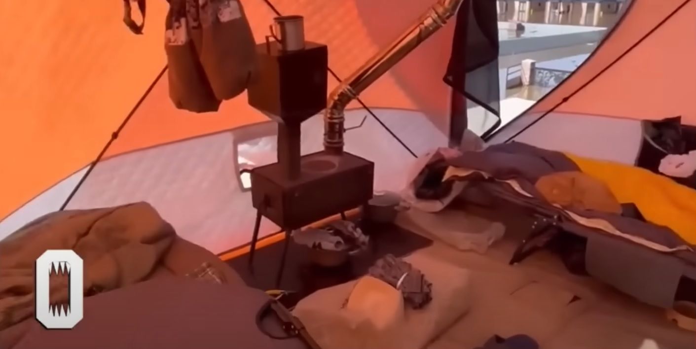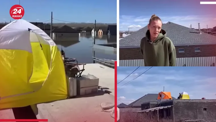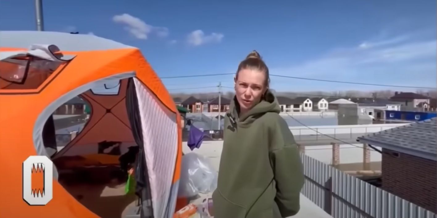 Росіянка скаржилась, що вони змушені жити на даху затопленого будинку. Усе тому, що вони бояться, щоб їх не обікрали місцеві. На даху вони розмістили два намети. В одному з них ночують та готують їсти. Там стоїть дві розкладачки, на яких вони з чоловіком сплять, пічка, яку розпалюють, на ній же готують їсти. Інший намет вони використовують як туалет.