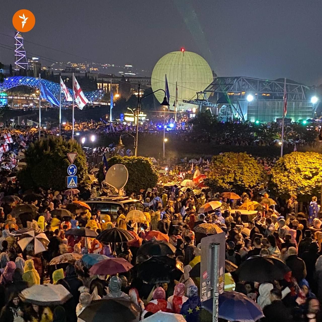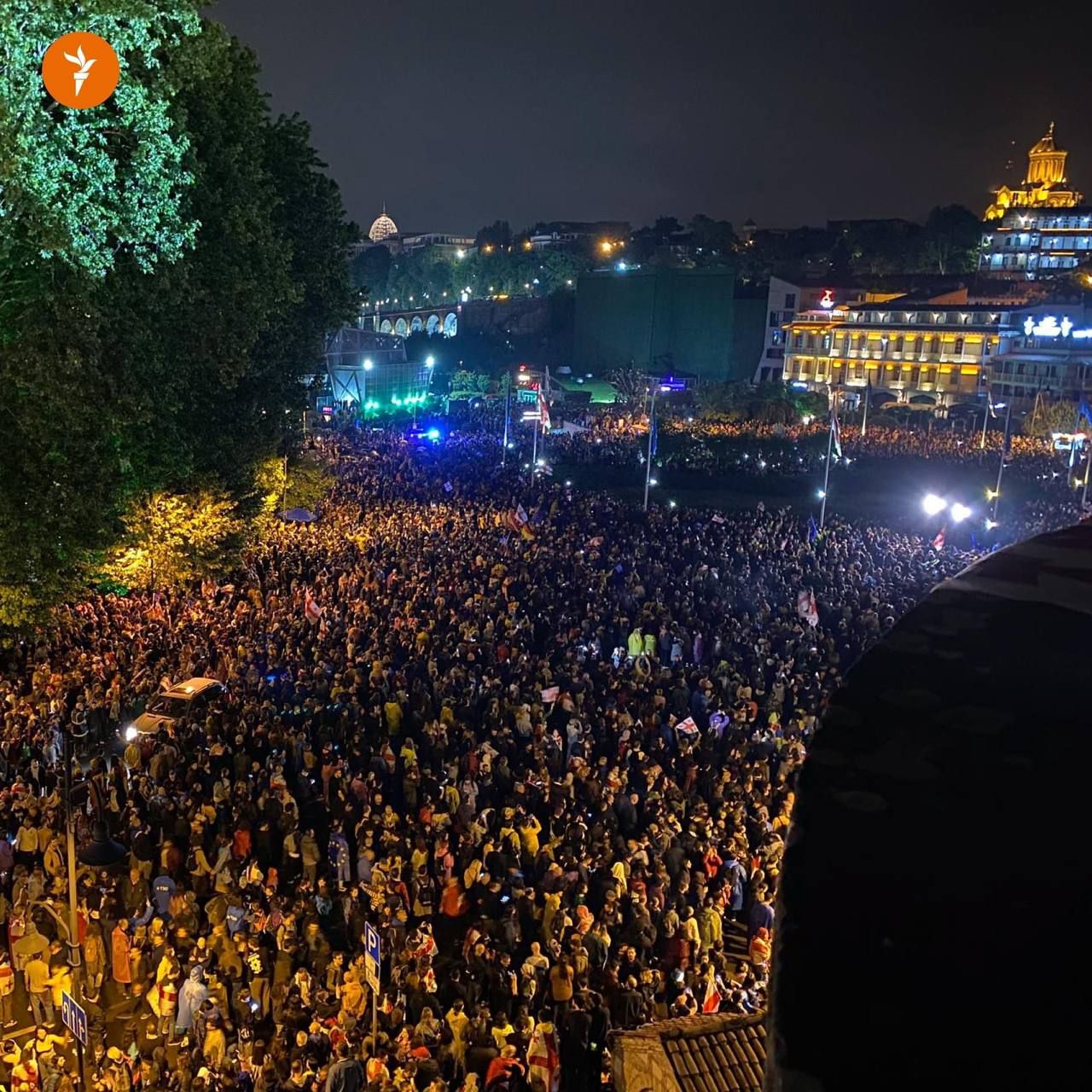 Площа Європи у Тбілісі повністю заповнена. На оприлюднених кадрах видно, що зібралося дуже багато людей. ЗМІ пишуть, що кількість учасників може сягати до десятків тисяч.