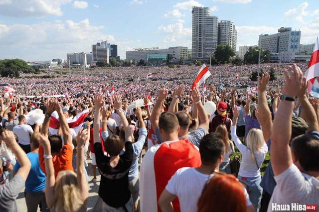 За офіційними підрахунками, влада Лукашенка на мітинг зігнала майже 70 тисяч осіб. Щоправда, судячи з фото та відео з заходу, ця кількість може бути набагато меншою, оскільки між мітингувальниками була величезна дистанція.