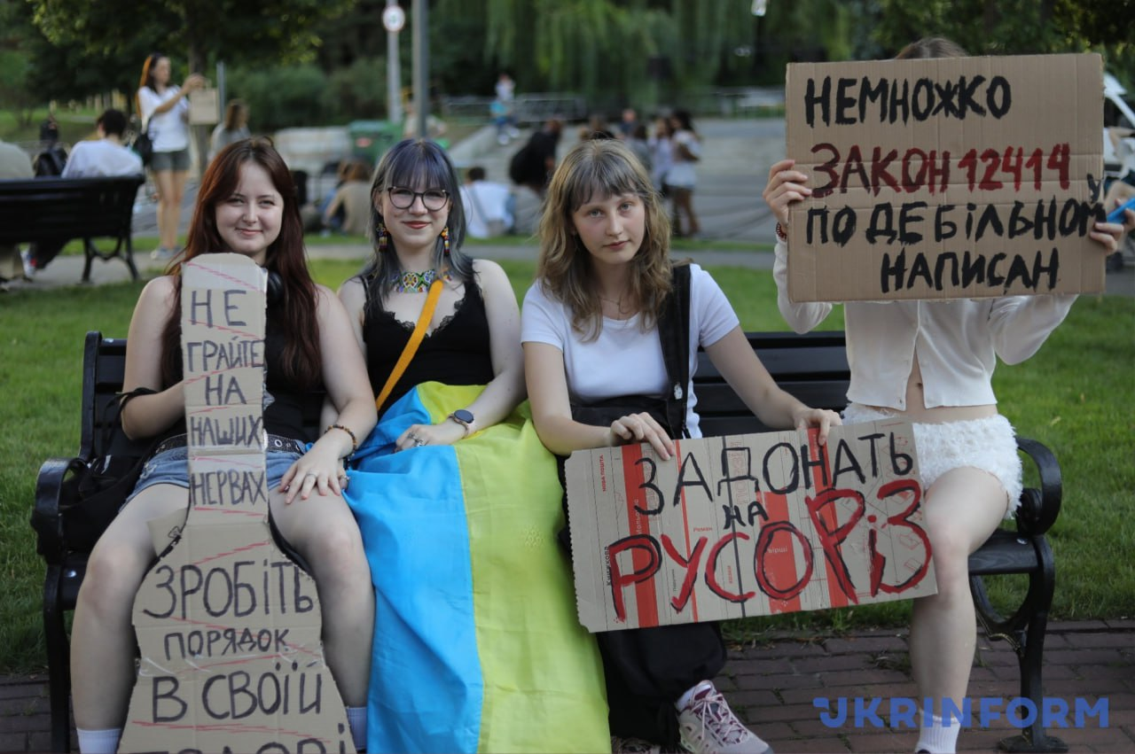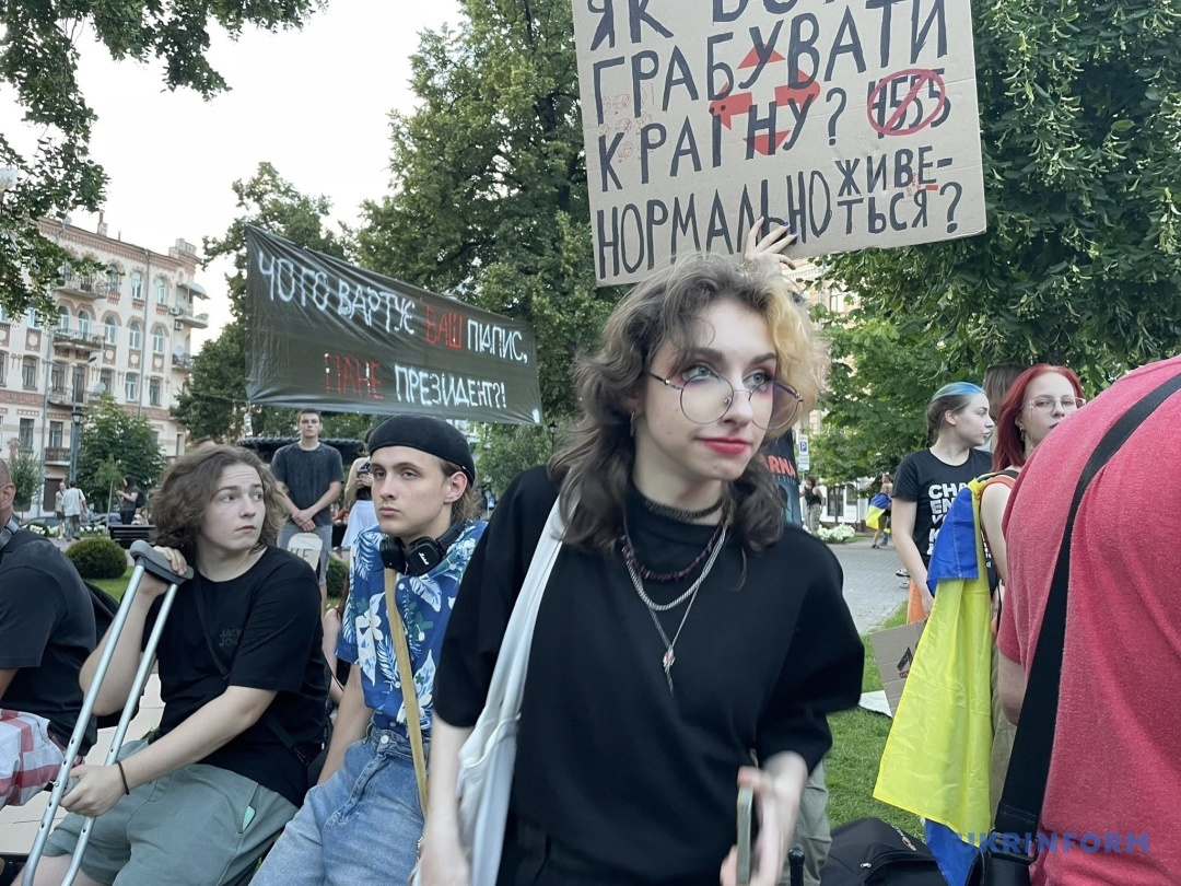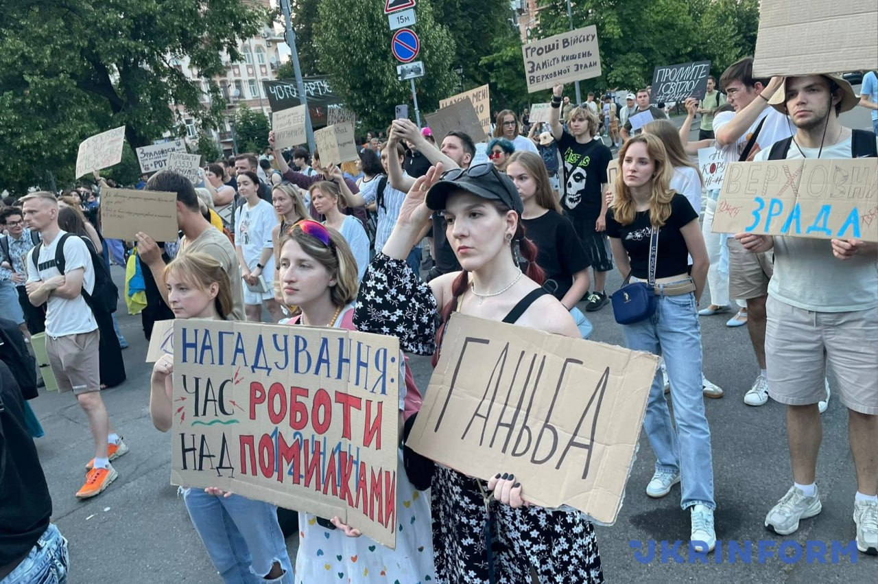 У Києві п'ятий день тривають протести проти закону, що ліквідує НАБУ та САП (фото Укрінформ, "Українська правда")