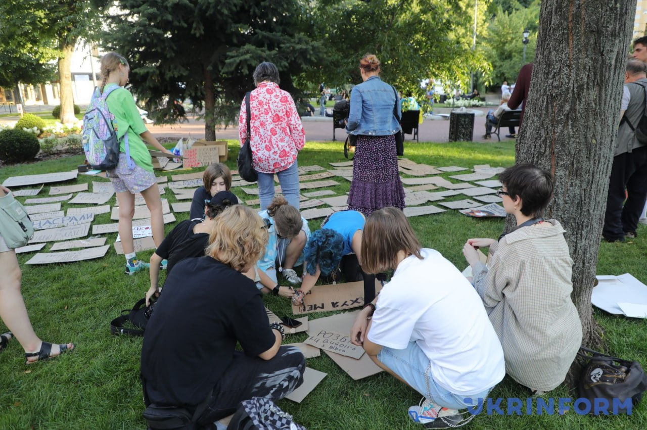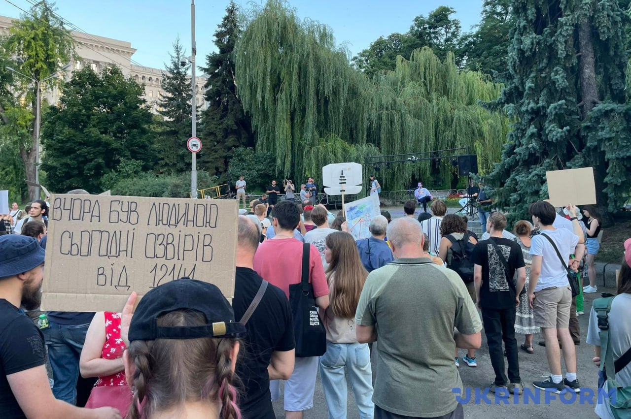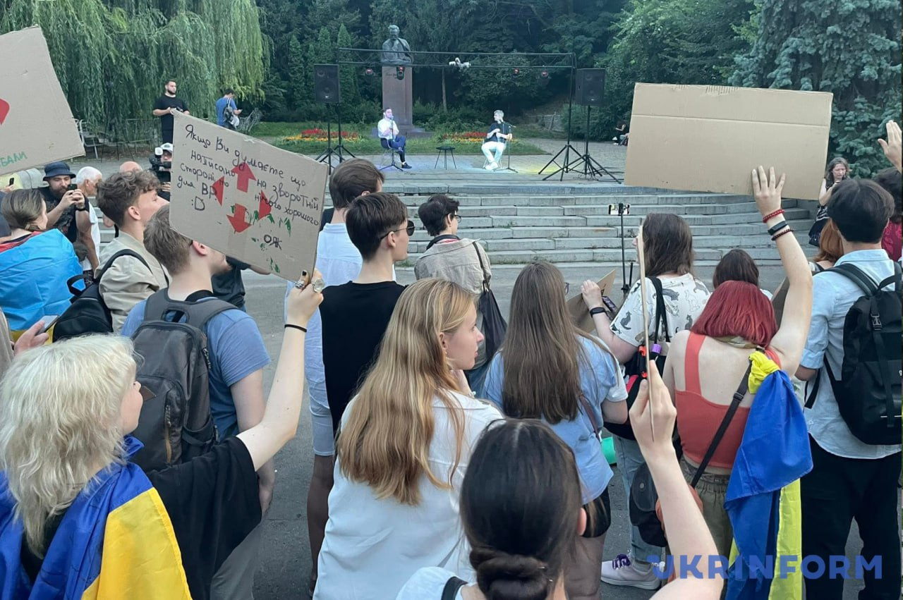 Близько двохсот протестувальників на площі біля театру імені Івана Франка стали учасниками публічної дискусії, яку організували активісти.