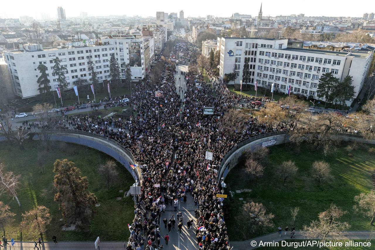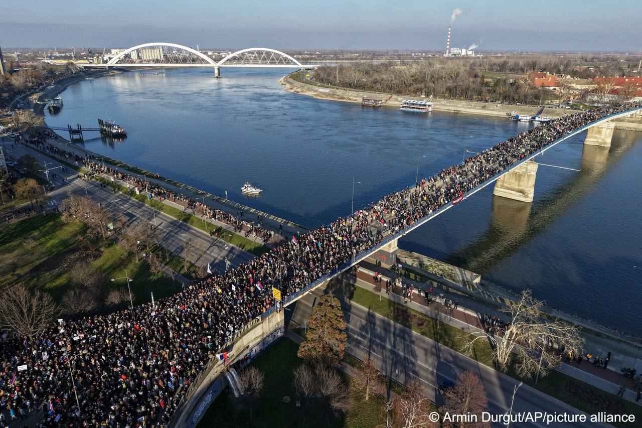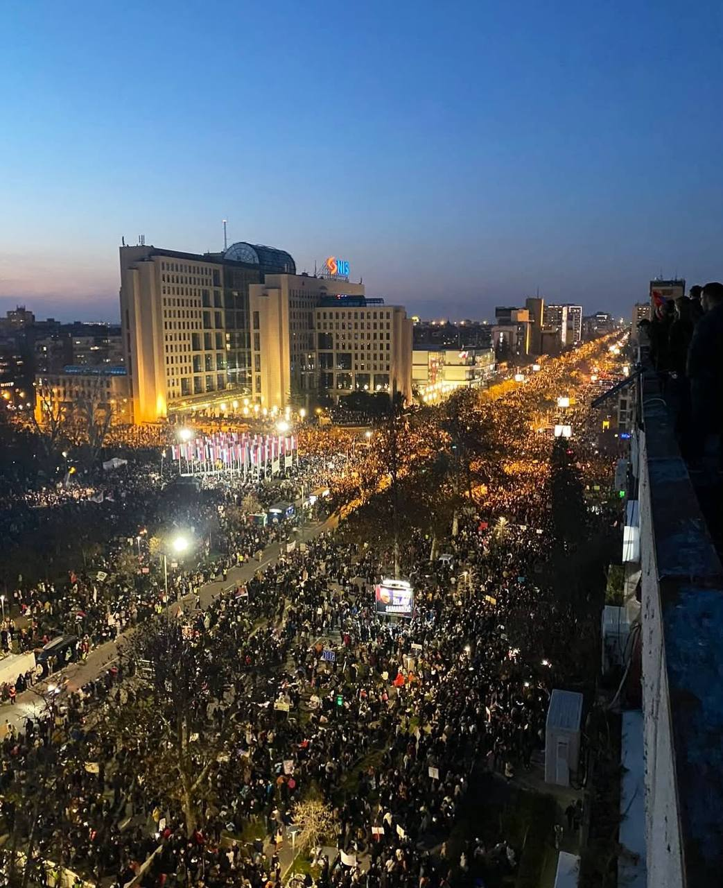 Трагедія, що спричинила цю хвилю обурення, сталася рівно три місяці тому. На вокзалі Нового Саду обвалився дах, забравши життя 15 людей. Учасники протесту вимагають прозорого розслідування та покарання винних.