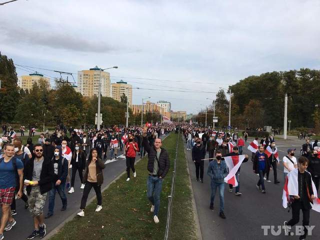 Незважаючи на натиск силовиків до центру Мінська продовжила йти велика кількість людей. За попередніми підрахунками, їх – десятки тисяч. Більшість колон прямували до Стели.