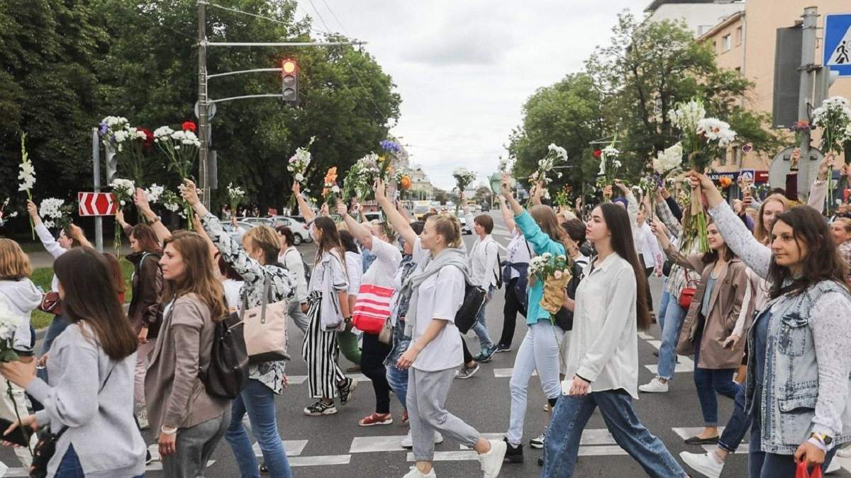 На акцію солідарності зійшлися жителі Мінська. Білоруски тримали у руках квіти, заявляючи, що вони проти будь-якого насилля.