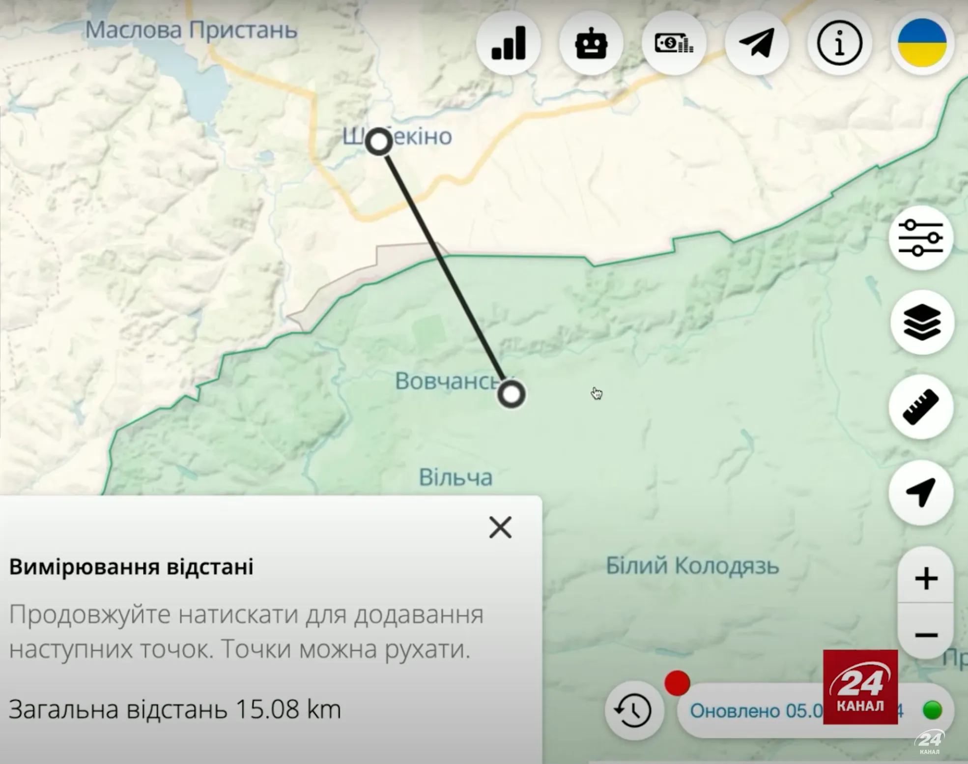 Відстань між Вовчанськом та Шебекіно / Скриншот з відео