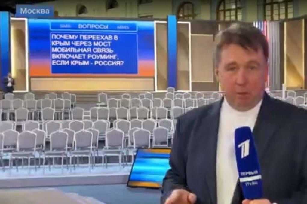 Кремлівські канали, очевидно, старалися менше показувати ці екрани на "офіційну камеру", але представники ЗМІ робили кадри на свої телефони та поширювали їх серед телеграм-каналів.