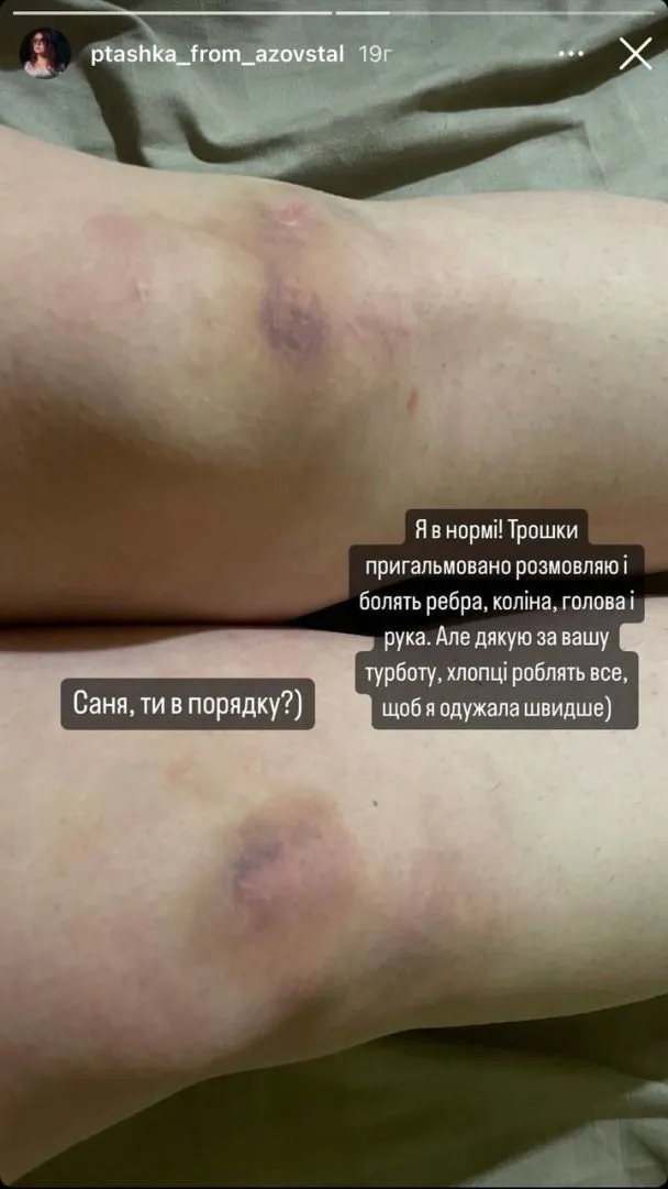 Травми, які "Пташка" отримала в аварії / Фото: instagram.com/ptashka_from_azovstal