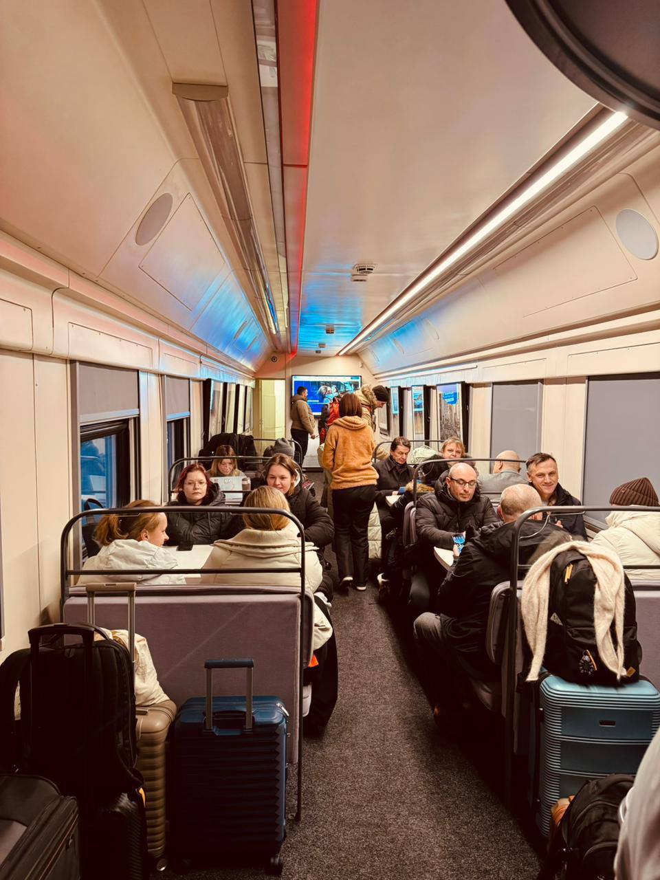 На станції, через яку проходять п'ять пар пасажирських поїздів з України, облаштували спеціальні вагони для обігріву людей. Один із вагонів обладнаний ігровою зоною для дітей, місцями для годування та сповивання малюків, а також розмальовками та наборами для малювання. Пасажири можуть підзарядити свої гаджети, а в теплій атмосфері їх пригощають гарячим чаєм.