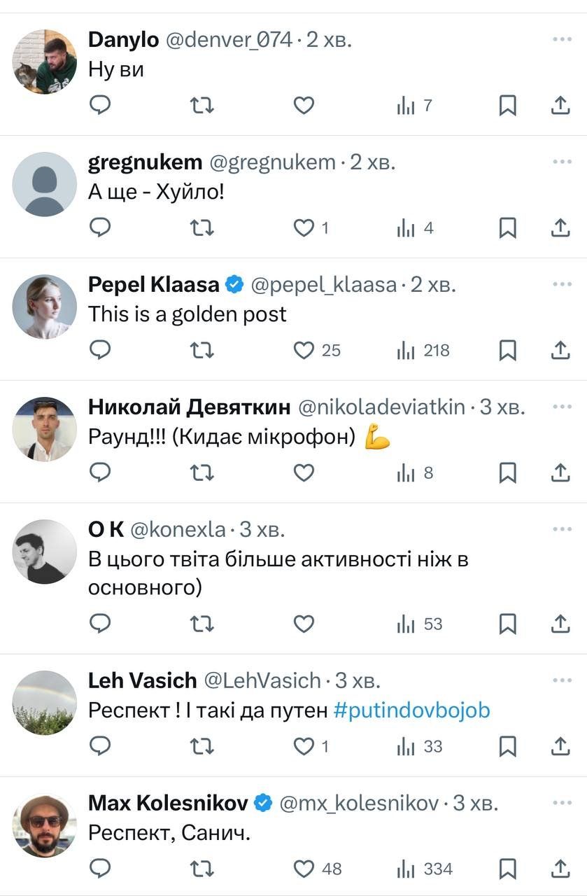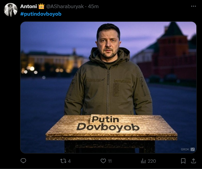 Одразу після цього українці запустили новий флешмоб. Усі, хто погоджуються з такою думкою президента, пишуть у коментарях до його публікації або на власних сторінках хештег #putindovboyob. Користувачі як просто доєднуються, так і підкріплюють пости мемами.