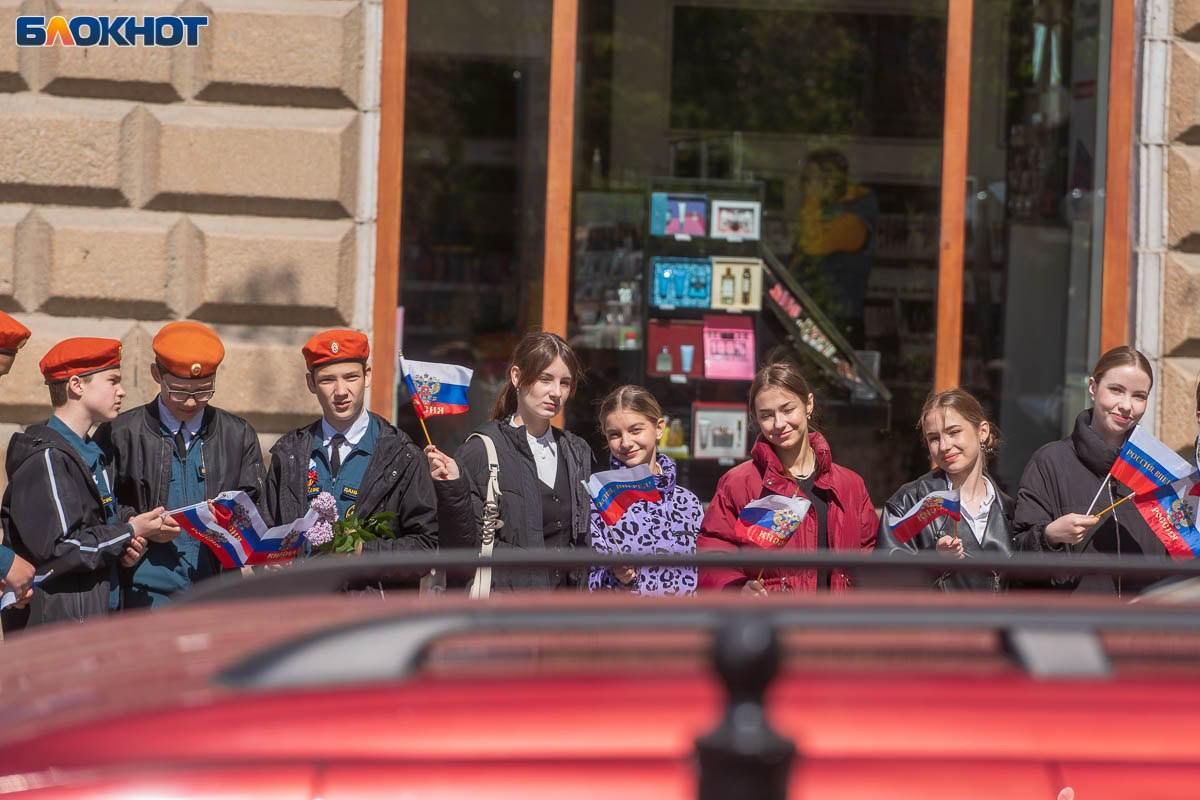 У центр Волгограда "зігнали" місцеву молодь, зокрема студентів Волгоградського державного соціально-педагогічного університету. Для привітання президентського кортежу людям видали російські прапори, а також перекрили кілька вулиць.