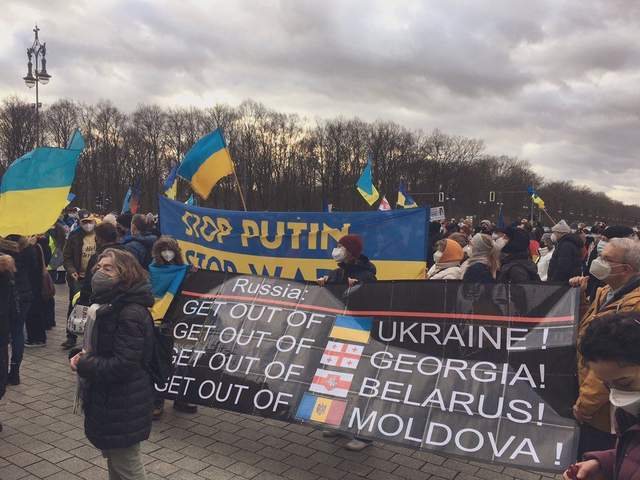 У Німеччині акцію солідарності влаштували біля Бранденбурзьких воріт. Люди виступали проти злочинної агресії Росії проти України. Вони переконані, що Берлін має чітко стояти на нашому боці.