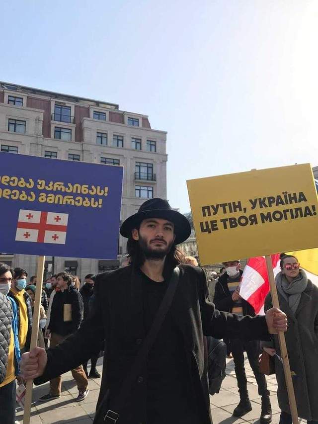 У Брюсселі грузини та українці разом прийшли до посольства Росії. Вони принесли портрети Путіна, де його зобразили максимально схожим до Адольфа Гітлера. Також тримали плакати із написом "Путін, Україна – це твоя могила".