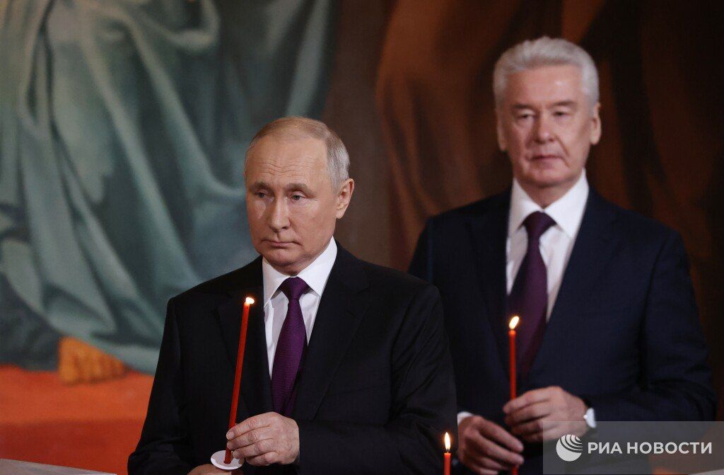 Як розповідають російські ЗМІ, Владімір Путін разом з мером Москви Сєргєєм Собяніним відвідали Великоднє богослужіння у храмі Христа Спасителя, передає 24 Канал. Демонстративним є момент, коли видно, як до церкви заходять попи та величезна кількість охорони. Чергова можливість побачити, що кривавий диктатор нікого і нічого не боїться.