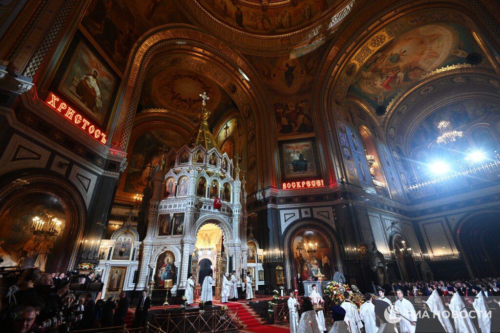 Путін на Великодній службі у Москві / Фото росЗМІ