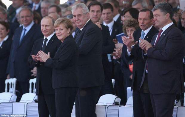 За день до інавгурації, 6 червня 2014 року, Порошенко здійснив закордонний візит до Франції. Там відбулася перша зустріч президентів України та Росії після початку окупації Донбасу та Криму. Перемовини Порошенка і Путіна відбулися в присутності лідерів Франції та Німеччини у французькому регіоні Нормандія. Зустріч поклала початок новим переговорам з урегулювання конфлікту на Сході України - "Нормандському формату", а згодом і підписанню "Мінських домовленостей".