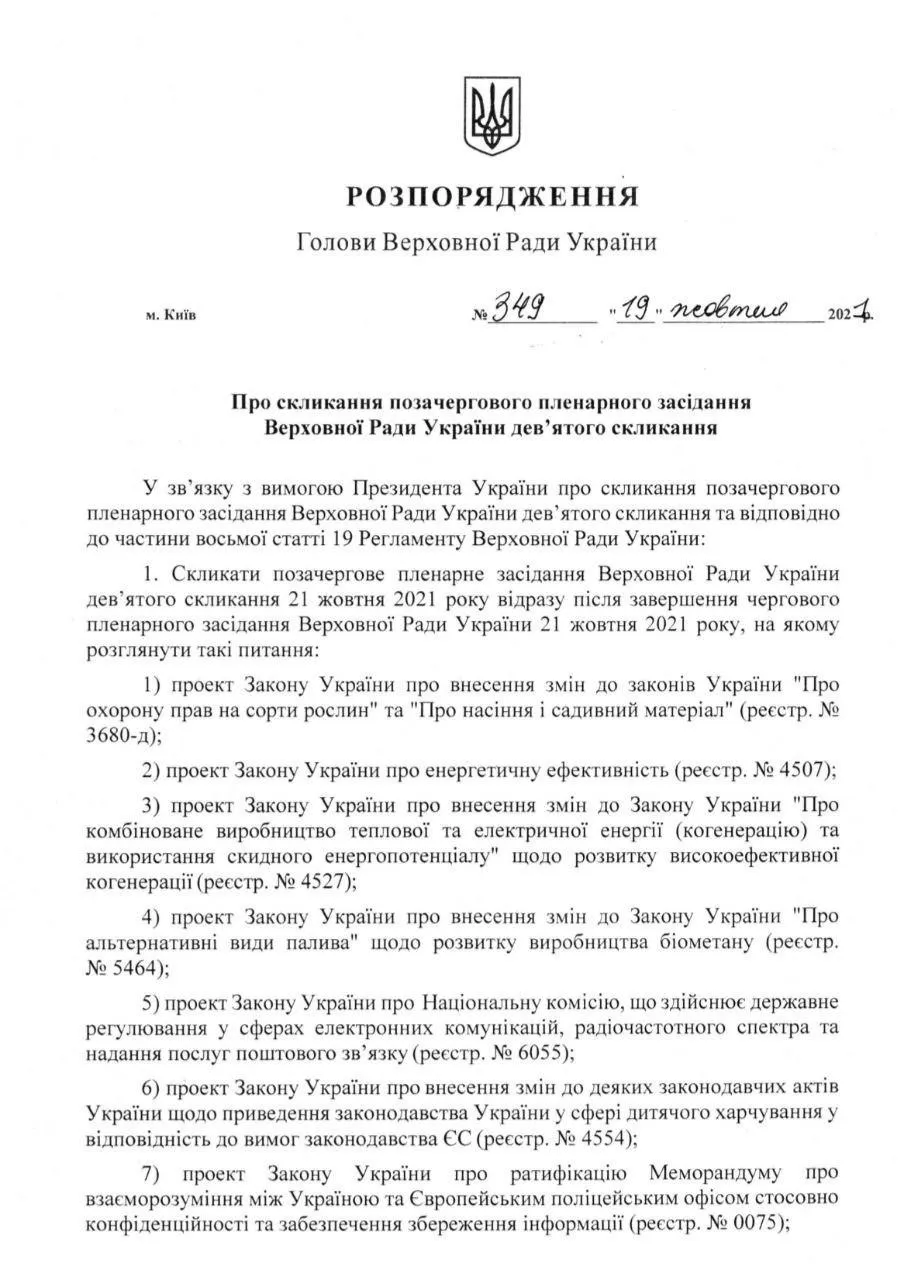Серед іншого мають розглянути законопроєкт "Про енергетичну ефективність", про альтернативні види палива щодо розвитку виробництва біометану, приєднання України до Конвенції про Європейський інститут лісу тощо.