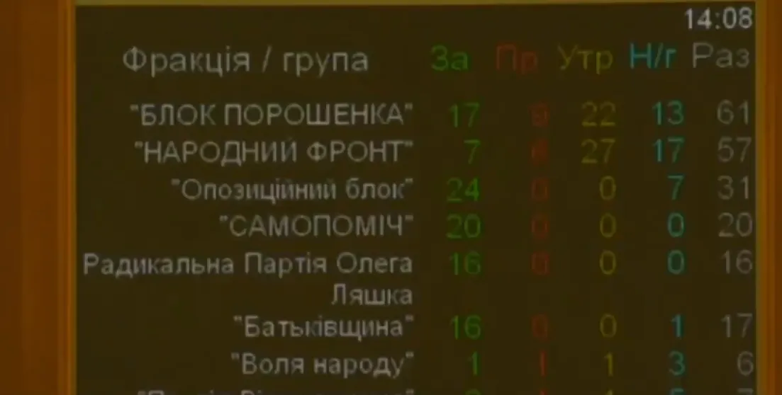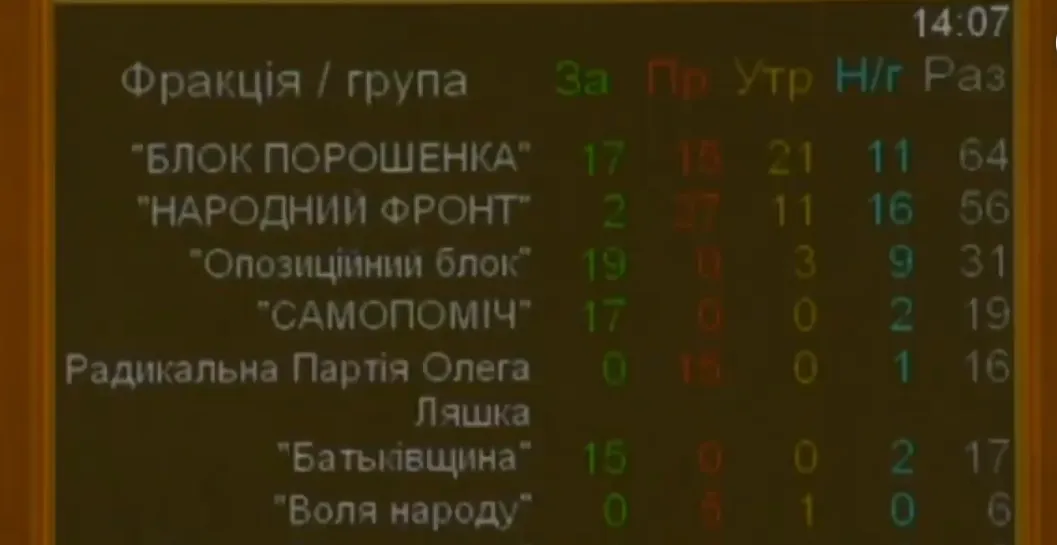 Проти включення проекту Зеленського в порядок денний проголосувало найбільше народних обранців з "Народного Фронту" – 27, а "Радикальної партії" та БПП по 15.