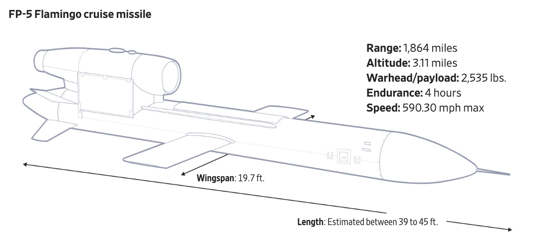 Журналістам The Wall Street Journal уперше показали крилату ракету FP-5, яка має неофіційну назву "Фламінго". Дві пускові установки втримували гігантські ракети довжиною з міський автобус та масою майже в 7 тонн.