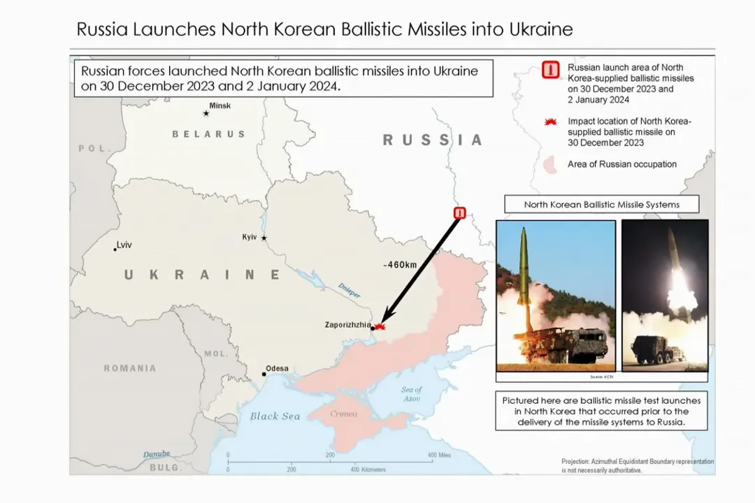 Під час брифінгу координатор зі стратегічних комунікацій Ради національної безпеки Білого дому Джон Кірбі заявив, що Росія била по Україні балістичними ракетами, отриманими від КНДР. Правда, він не назвав точну назву самої ракети, але оприлюднив слайд, який зацікавив Defence Express.