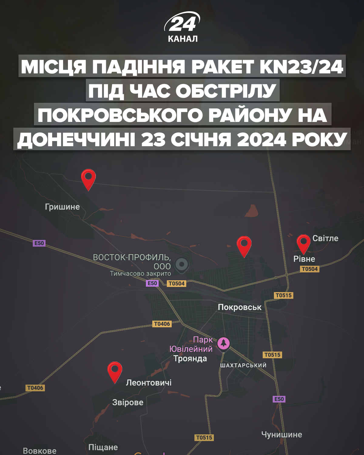 Було й чимало обстрілів, коли ніхто з фахівців взагалі не міг визначити, куди намагалися поцілити вороги. Наприклад, 23 січня 2024 о 15:00 російські військові завдали ракетного удару по Покровському району Донецької області. Дві корейські KN-23/24 впали у відкритому полі у селах Звірове та Гришине, а ще дві – вщент знищили приватні будинки на вулиці Олекси Береста, 54 у Покровську та на вулиці Новій, 32 у селі Рівному.