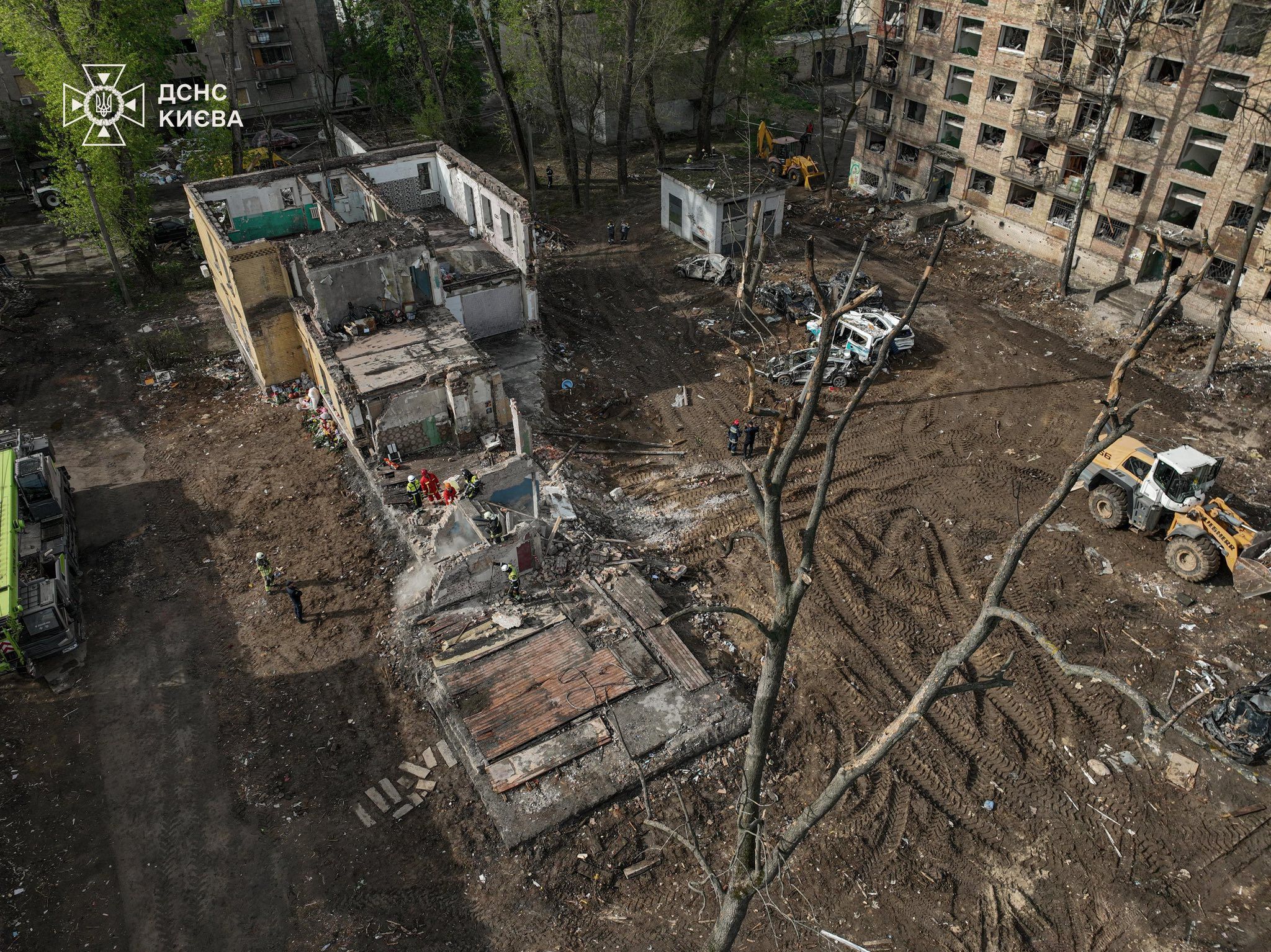 Наслідки від прильоту північнокорейської балістичної ракети 26 квітня / Фото ДСНС Києва