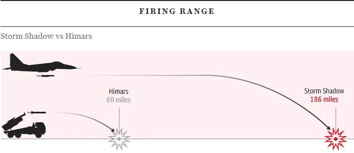 Порівняння далекобійності HIMARS і Storm Shadow / Інфографіка Telegraph
