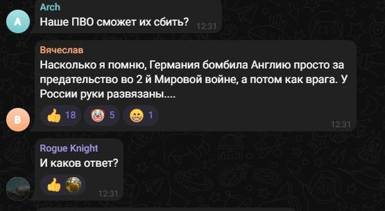 Кровожерливі окупанти вважають, що треба у відповідь "атакувати" Велику Британію, а деякі – знову починають погрожувати ядеркою. Зокрема виділяється найголовніше питання про могутнє російське "пе-ве-о" – чи зможуть окупанти збити британські ракети. Істерика у соцмережах не припиняється і досі.